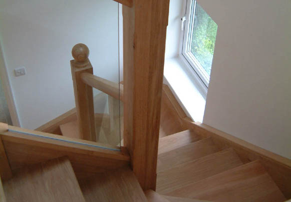 We also removed the existing staircase and redesigned the hall and landing with a simple oak staircase with glazed balustrading. The clients were keen to give the staircase a traditional touch with the addition of turned newel balls.