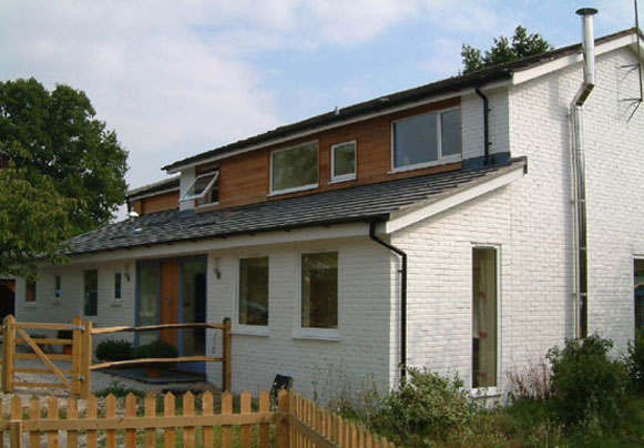 Being typically 1970s, the house was clad in stained softwood boarding, which did not complement the dull facing brickwork. The entire house was re-clad with cedar boards and the brickwork was painted white. This gave the house a contemporary feel and brought it back to life again.
