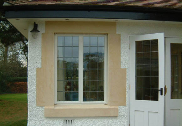 The extension has been detailed to match the existing house. The roof has plain clay tiles, the walls are finished with textured render, and the windows are the contemporary equivalent of the original steel windows. The window surrounds have been reproduced using render to replicate the original stone window surrounds.