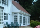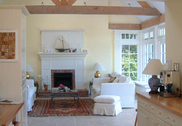 The brief was to create a new Family Room adjacent to the existing kitchen, a new Garden Room adjoining to existing Living Room, and a new front entrance hall. The clients spend time in the US and were keen to emulate the New England style, and to enhance the appearance of the existing white painted and timber boarded house.