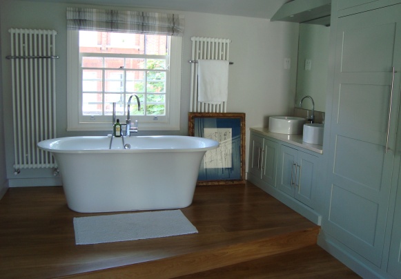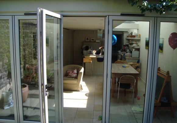 The kitchen was extended and lightened incorporating an existing lean-to and adding a slanted glazed roof, while a full wall of glazed doors were added to the rear. The existing staircase, which divided the kitchen and living area's, was removed to provide one continuous living/dining/cooking space. A new staircase to the side of the house with an enlarged landing, enlarged window and opaque glazed doors to the bedrooms allowed light to filter down the staircase into the living areas.