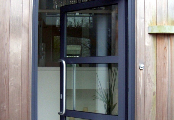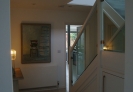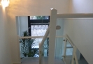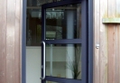 The red brick exterior was updated using quantities of low maintenance cedar panelling (fading to grey with weathering). Windows were replaced by wide paned, grey powder coated aluminium panels. Depth and visual interest were added through a two storey glass front entrance opening to the front hall and a glass panelled staircase.