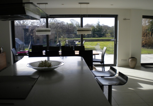 A two storey extension to the rear of the property facilitated a complete reworking of the original interior layout. By removing walls and incorporating extensive use of glass sliding doors, the large family living/dining space becomes the focus of the house. Sliding panelled doors provide the ability to create smaller spaces within the main L shaped room. Upstairs, four bedrooms and two bathrooms (one en-suite) complete this modern family home.
