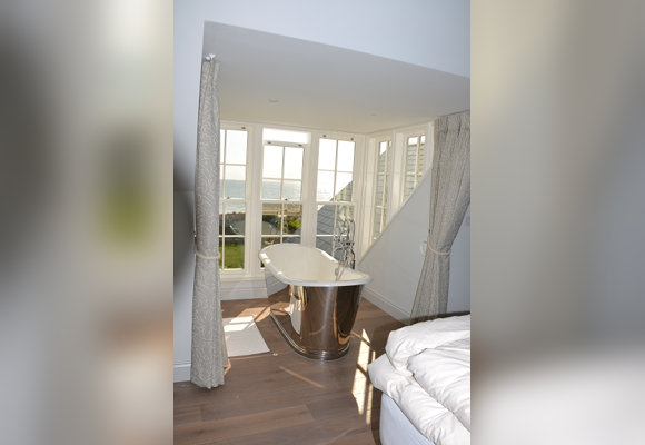 The living areas are large and open, and are designed to make the most of the sunny coastal location. The owners wanted to include a covered barbecue area and a large first floor balcony which has views across to the Isle of Wight.
