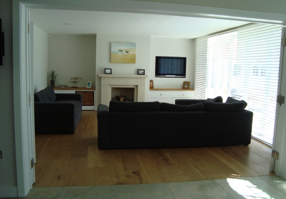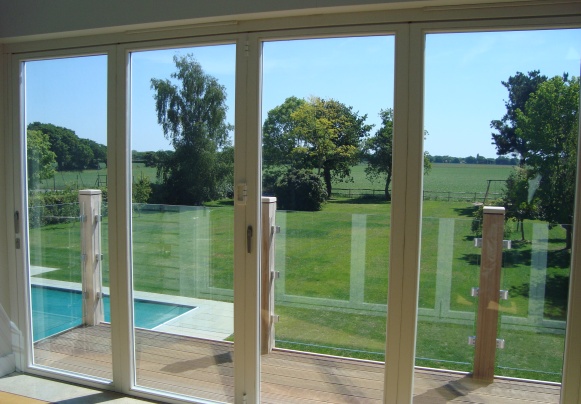 The resulting house was designed to have a simple and traditional appearance in keeping with other properties in the area. Three small roof spans connect to form a shape which is modest and domestic in scale though covering a large footprint. Though traditional in design the use of large windows, glazed doors and open spaces gives a modern feel, maximising available light and promoting views across open farmland.