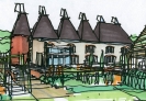 The early nineteenth century building was originally a large timber barn and evidence suggests that the five square conical slate roofs were added later, to form hop drying kilns, with one or possibly two round brick kilns added later.